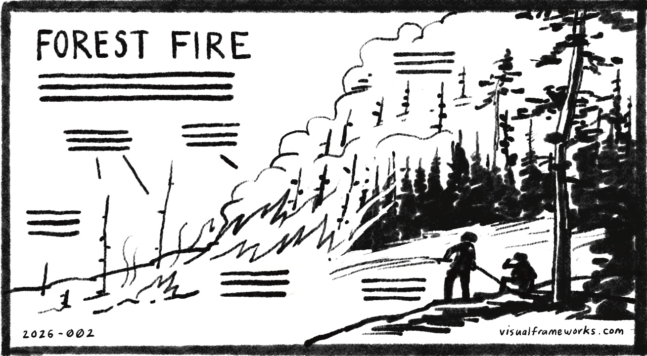 A forest fire moves through a landscape in phases. Fuel accumulates over years: dry leaves, fallen branches, the dense undergrowth that builds in the shade. When a spark flares, the fire does what fire does: it consumes what has built up, releases what has been locked inside the wood, opens the canopy to the sky. The ground left behind is blackened and bare. The soil is also, suddenly, rich.